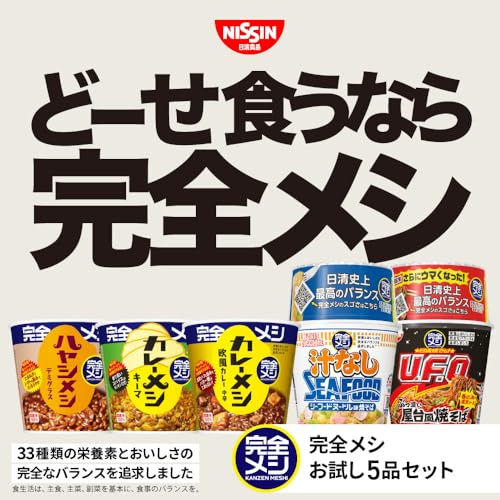 33種類の栄養素が整っていて、三大栄養素のバランスが整った食品、日清食品の「完全メシ」。