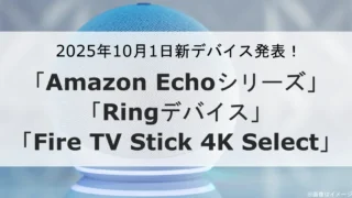 Amazon 2025年秋発表の新Amazonデバイス 「Amazon Echoシリーズ」「Ringデバイス」「Fire TV Stick 4K Select」│リリース情報 2025年10月1日に発表された新しいAmazonデバイス。どんな製品が発表されたのか簡単にまとめました。 2025.10.01 Amazon